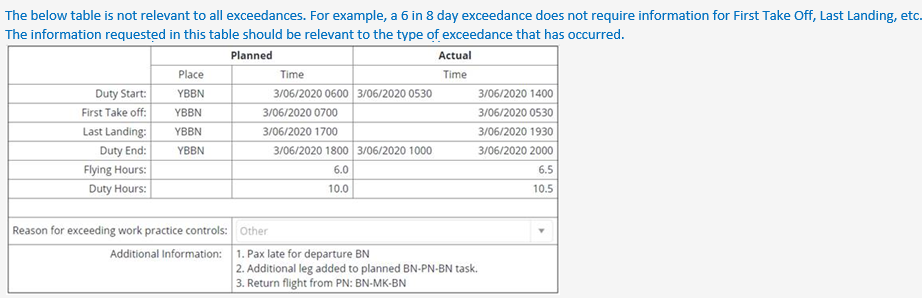 customise the fields in the discretion report table to match the breach