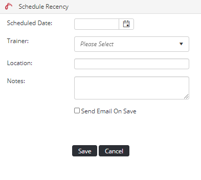The recency grid in the dashboard doesn't have the same setup for scheduling recency items as the setup up in recency profile page, would be very useful to get 'Send Email on Save' option in recency scheduling in recency grid in dashboard. Images attached for what current views of both are