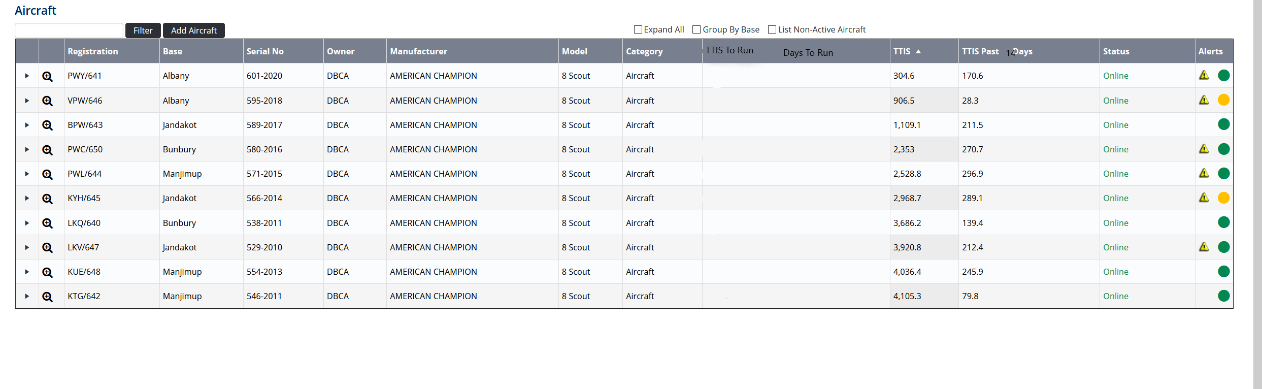 Can we have “TTIS to Run” being how many hours are left before the next maintenance event is due, “Days to run” being how many days are left before the next calendar maintenance event is due and “TTIS past 90 Day” changed to 14 days?