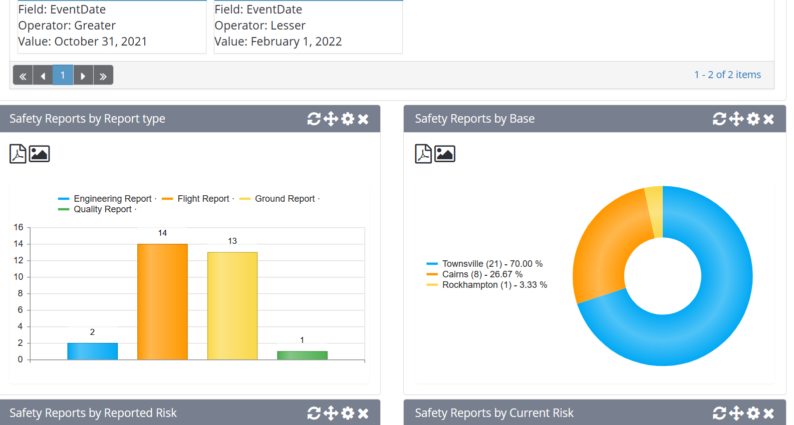 Currently, the dashboard function for safety reports does not track data in the hazard register. It would be extremely useful if there was an option to view data from the hazard register (such as displaying top hazards by number of linked reports with the ability to filter by date of occurrence). This would give the user trending data and highlight hazards that require review of controls. The data could be displayed like the safety reports dashboard items (charts / table, pie charts, etc).