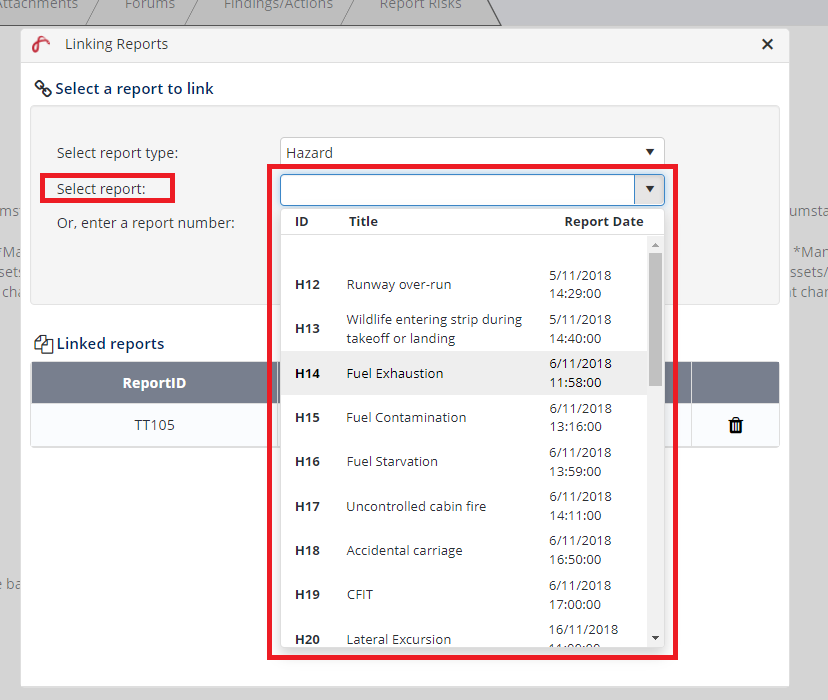 Would be great if either configuration/structure of linking a Hazard/Risk/ Audit from the "Link Reports" pop-up in a Safety Report. The wording is very confusing.