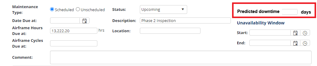 Currently, it is not possible to add the predicted downtime of an aircraft for each maintenance event.