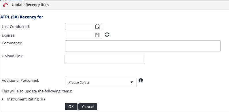 I would then go to My Recency/Company Recency/ Aircraft Recency page and update a recency item.