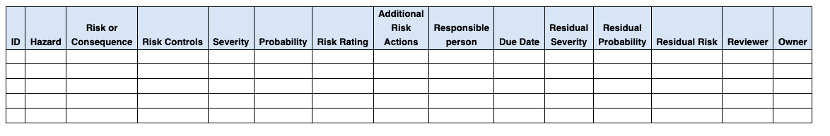Printing the Hazard and Risk Register produces a document that matches the layout and styling in Image 2.