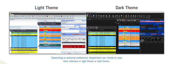 Night shift dispatchers often experience screen glare and eye fatigue with bright interfaces, making dark mode a much more comfortable option.